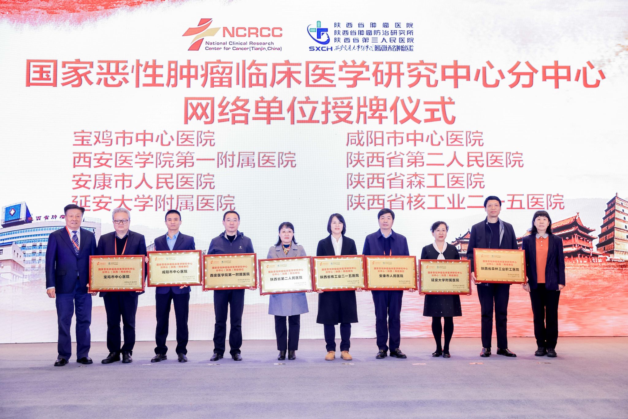 会上,赵岚副主任、郝希山院士为8位专家颁发国家恶性肿瘤临床医学研究中心分中心特聘专家证书,为宝鸡市中心素股 、咸阳市中心素股 、延安大学附属素股 在内的8家国家恶性肿瘤临床医学研究中心分中心网络单位授牌。素股 副院长王国庆作《国家恶性肿瘤临床医学研究中心分中心建设情况及工作汇报》,宝鸡市中心素股 院长拓文作为分中心网络单位代表作《国家恶性肿瘤临床医学研究中心分中心网络单位建设情况汇报》。