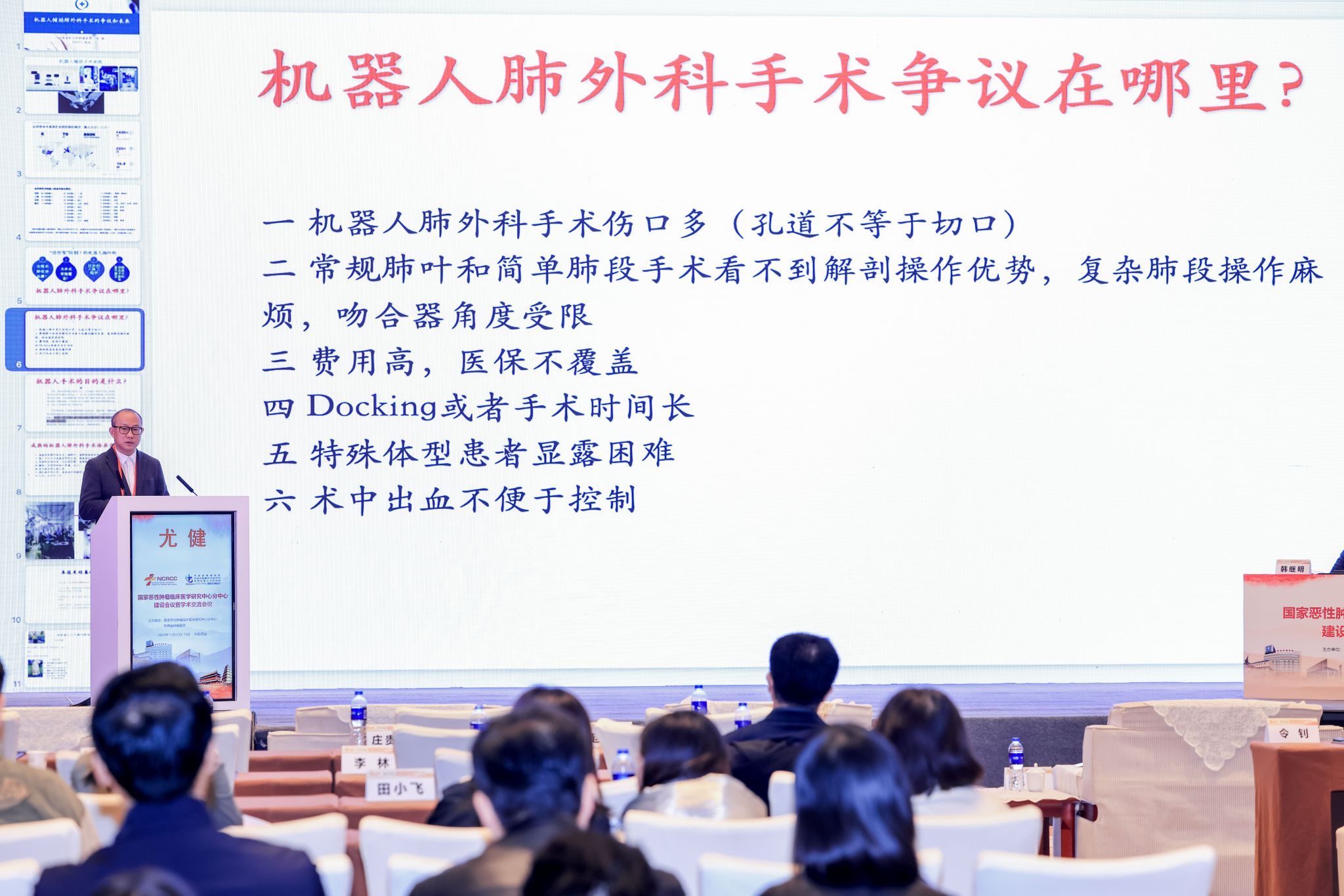 天津市肿瘤素股 空港素股 胸部肿瘤科主任尤健以《机器人肺外科手术的争议和未来》为主题作了精彩讲座。