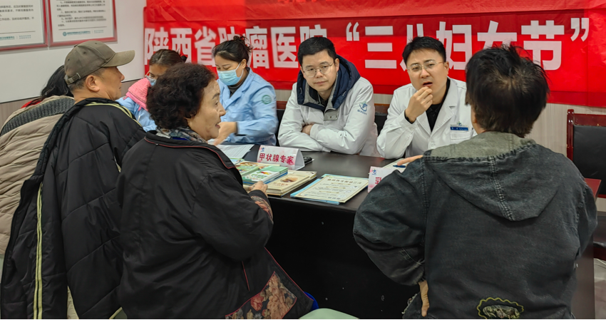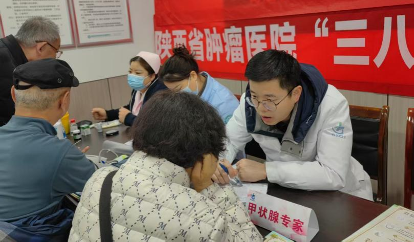 3月7日上午陕西省疾病预防与控制中心进行防癌抗癌科普宣传,免费乳腺癌和甲状腺癌B超筛查。