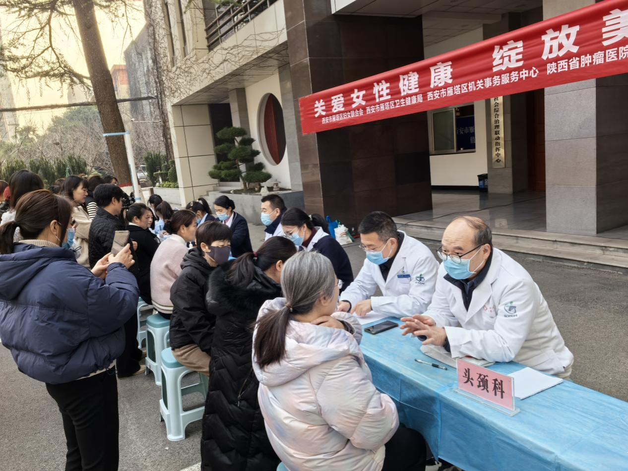3月6日上午雁塔区政府、雁塔区卫健局进行防癌抗癌科普宣传,免费乳腺癌和甲状腺癌B超筛查。