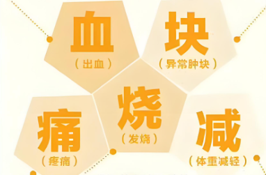 2.异常肿块:身体浅表出现经久不消或迅速增大的肿块;乳房发现不规则肿块,双侧不对称;甲状腺发现肿块,突然发不出声或声音突然嘶哑等。