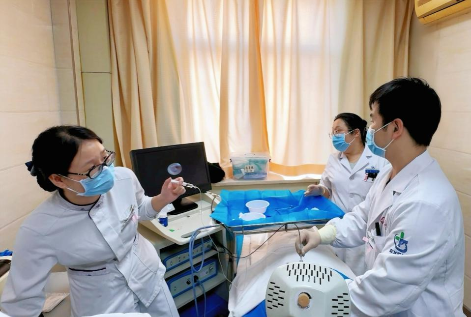 (医师操作乳管镜检查中)