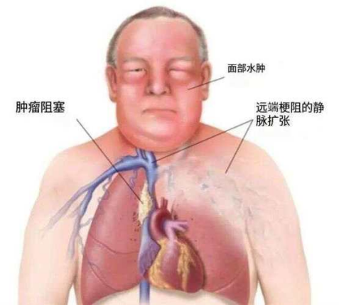 近日,一位女性肺癌患者,发现自己的脸一天比一天肿的厉害,肿得像“发面馒头”,脖子也粗了,胳膊也粗了,没过几天,她开始出现呼吸困难,甚至平躺时像被人掐住喉咙。患者在其他素股