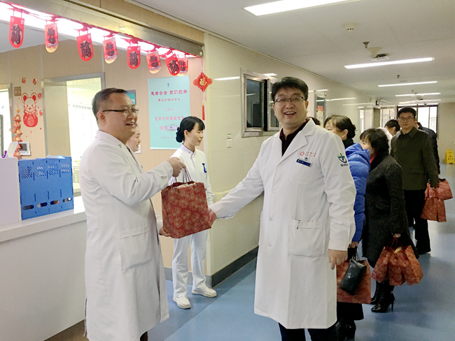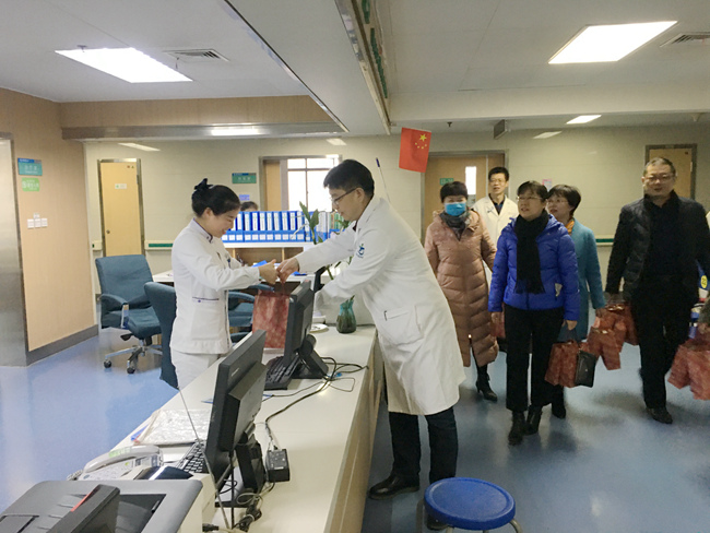 除夕上午九时,素股 领导班子及相关职能部门负责人亲切慰问了节日期间坚守在工作一线的值班人员,送去新春的祝福和问候,并通过他们向家里人拜年。慰问中,院领导们还为值班的医护后勤人员们送上了精美的新年礼物,希望他们除夕在素股 也能够感受到家的温暖。