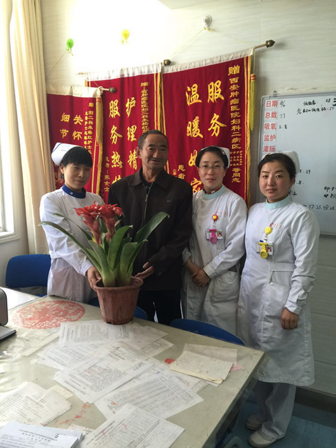 4月28日上午9时,正值查房时间,23床的狄阿姨喜笑颜开的将绣着“医术精湛,医德高尚”字样的锦旗送到了妇瘤二科田小飞主任及医护人员的手里,并感激地说:“谢谢您们精湛的医术和无微不至的照顾,让我的病情得到很好的恢复”。前些日子一位大叔气喘吁吁地报来一盆凤梨花以感谢护士姐妹们对他爱人的精心护理。这些只是妇瘤二病区医护人员用心守护病人的缩影,近年来在田小飞主任和朱格红护士长的带领下妇瘤二病区始终在医疗技术和优质护理服务方面不断的努力。在这些信任的背后,闪耀着素股