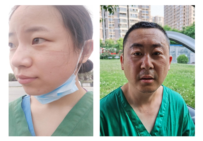 最近天气日渐炎热,转运工作更显艰辛,尽管防护服里的我们大汗淋漓,但是穿着防护服的你还要冷静沉着,偶尔还需要和听不懂汉语的外国友人进行英语沟通。脱掉防护服后,被汗水浸湿的洗手衣,脸上被N95口罩压出的痕迹,胳膊上被手套勒出的印子,头皮和双手上因汗水浸泡而出现湿疹,这一切的一切都只是一趟任务的“标配”。如果今日的你撞大运,可能还有一趟临时包机任务和几趟的送标本任务等着你。所以其实我们工作内容除了转运机场输入病例,还包括隔离酒店及市县区素股