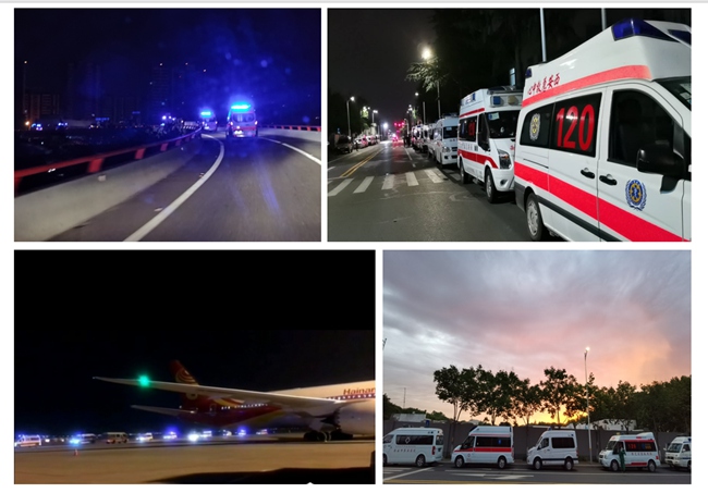 “凌晨、傍晚、深夜”不同时间段,机场和急救车队的身姿