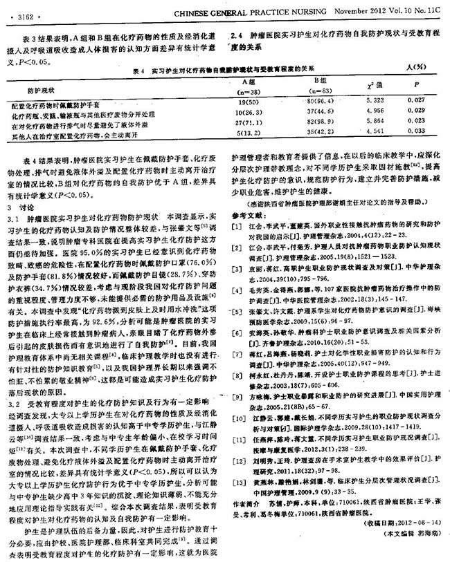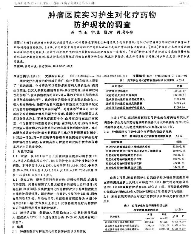 肿瘤素股 实习护士对化疗药物防护现状的调查
