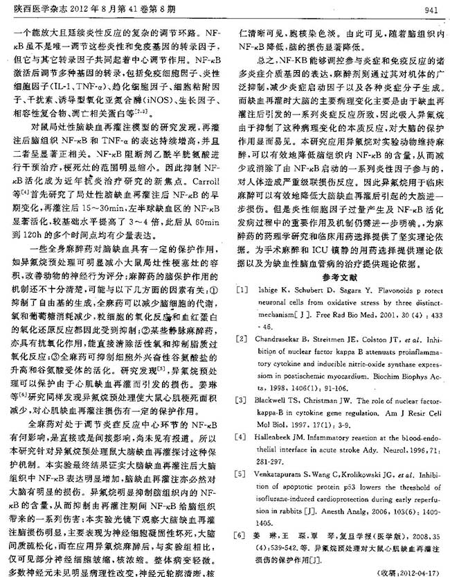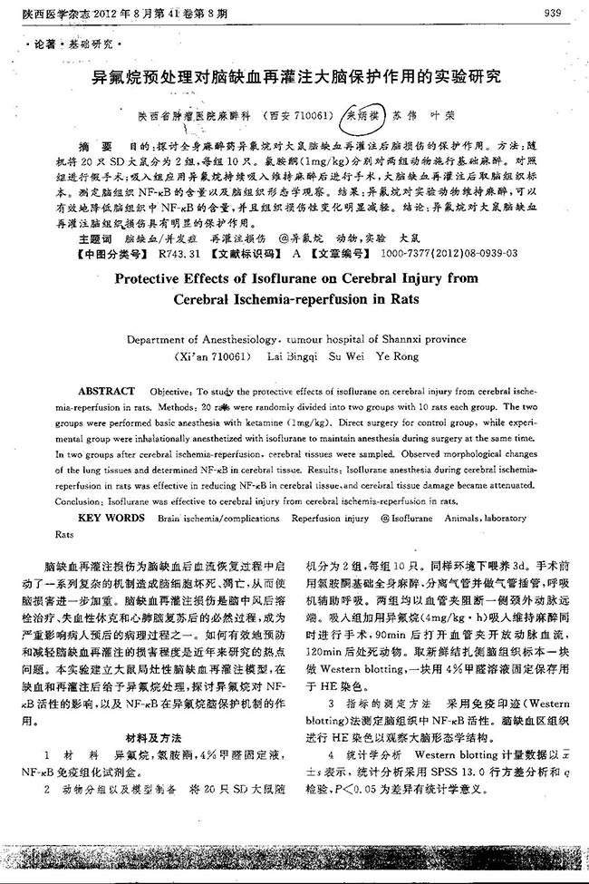 异氟烷预处理对脑缺血再灌注大脑保护作用的实验研究