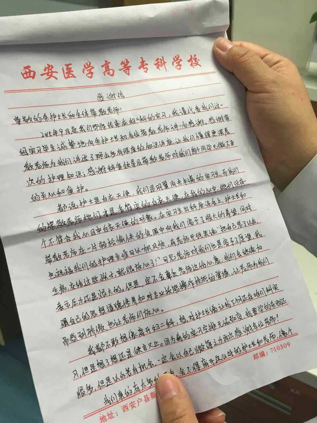 都说护士是白衣天使,我们尚且是羽翼未丰满的实习生,而我们的带教老师们在我们。心中则是当之无愧的符合这一形象。在实习生出科座谈会上,护士长和各位老师在一片轻松愉快的氛围中给予了我们很大的期望,我们定当不会辜负老师们这份心意。我们会继续加油,不断加强自己的思想道德修养和对专业技能操作的掌握,让老师为我们而骄傲,也让老师们放心。