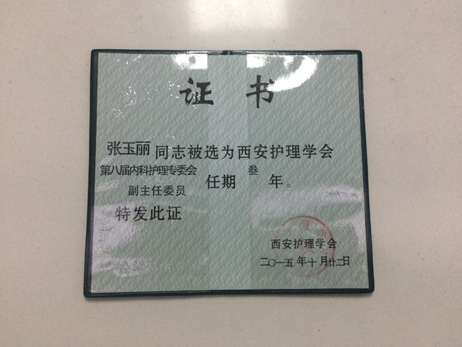 放疗二科护士长张玉丽当选选西安市护理学会内科 专业委员会副主委