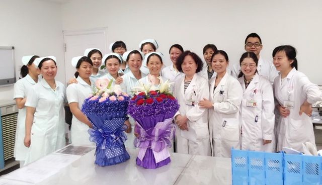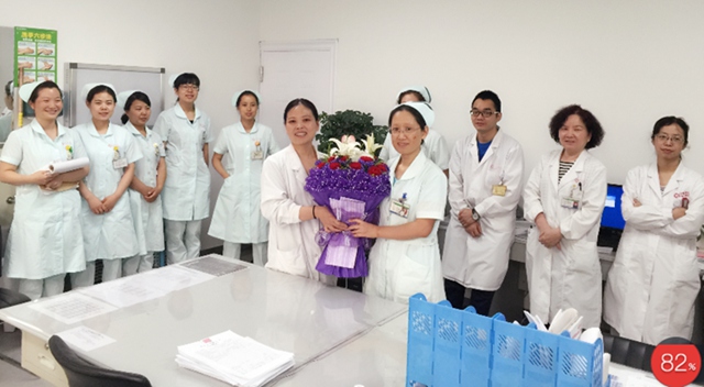 妇瘤四病区王国庆主任和医生团队给护士送节日祝福(卢佳摄)