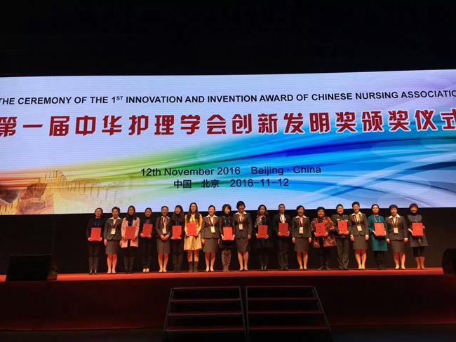 11月12日,中华护理学会首届科技创新大会暨2016年护理学术年会在北京国家会议中心开幕。中华护理学会首次设立“中华护理学会创新发明奖”,以表彰为护理事业的创新发明做出突出贡献的护理工作者。首届中华护理学会创新发明奖评选活动共收到全国27个省、自治区、直辖市护理学会申报的共131个项目,经中华护理学会创新发明奖评委 会评审专家客观、认真、公正、严谨的初评、终评,以及法律顾问全程的监督,最终评出二等奖5项、三等奖8项、优秀奖37项,共计50项,一等奖空缺。