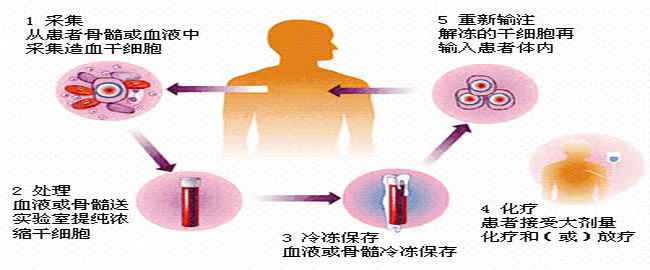 多种化疗敏感性肿瘤,如淋巴瘤、白血病和多发性骨髓瘤等,具有显著的剂量-效应关系,即剂量增加1倍,疗效增加数倍;反复放化疗的肿瘤细胞,产生化疗药物和放疗耐受性,对常规剂量的放疗和化疗不敏感;颅内、睾丸等组织具有血液屏障,化疗药物不易透过,常规剂量的化疗效果不好。对于以上种种情况,增加放化疗的剂量可以极大地提高疗效。但是,增加剂量,会出现严重的骨髓抑制,导致治疗相关性死亡。为了解决这一矛盾,现代医学采用AHSCT技术,即在致死性放化疗前,采集患者自身的造血干细胞(造血种子细胞),经特殊保存,于超强度的放化疗后输注,促进免疫和造血重建。既解决了治疗强度问题,又保证了治后的安全。