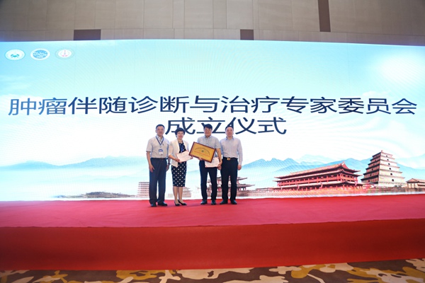 中国抗癌协会谢晓冬理事与中国抗癌协会肿瘤标志委员会邢金良主委员宣布“肿瘤伴随诊断与治疗专家委员会”成立,并任命赵征教授及于津浦教授共同单位担任组长,随后进行了隆重的授牌仪式。