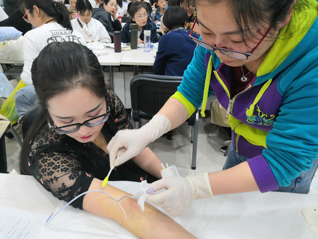 本次培训班由护理部副主任王雁主持开幕式。空军军医大学唐都素股 、市静疗主任委员何华副主任护师以及护理部谢娟主任分别致辞。在两天的培训中,由西安市静疗主委唐都素股 何华副主任护师,省静疗副主委交大二附院张瑞丽副主任护师、以及素股 的王雁副主任护师、唐红霞副主任护师、张惠副主任护师、邹春芳主管护师等具有丰富临床理论及实践经验的PICC置管和维护专家就PICC维护的全流程、PICC常见并发症的防治策略等内容进行了细致精彩的演讲,孙飞护士长、常利主管护师进行了PICC操作维护讲解和演示,并通过“依静制动”图片案例教学、获奖静疗情景剧展示等多种形式进行培训,寓教于乐。在PICC操作工作坊环节,担任桌长的素股30位护士长和静疗骨干护士对学员分别进行了一对一的手把手的指导和考核,达到了巩固的目的。培训结束时,由唐红霞、邹春芳、张惠三位护士长对学员的成果进行了一一点评。参加培训的学员纷纷表示感触良多,受益匪浅。