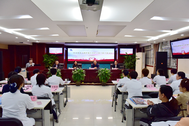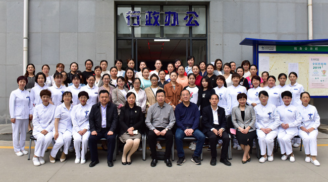 马长虹书记、姚俊涛副院长、李林副院长、贾延副院长以及担任授课任务的护士长和全体学员。
