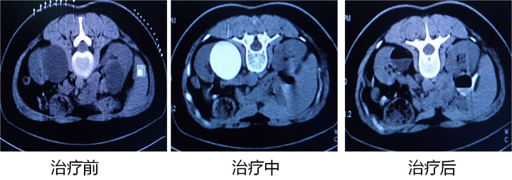 女,49岁,双肾多发囊肿术后复发CT引导聚桂醇硬化治疗