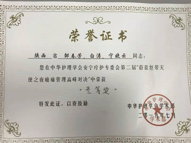 7月5-8日,中华护理学会在广东汕头召开以“尊重生命,减轻痛苦,提升安宁疗护照护品质”为主题的全国安宁疗护护理新进展研讨会。来自台湾、香港和内地的百余名护理界专家,全国近1200位医护人员参加了此次学术盛宴。会议期间,素股护理部刘爱兰副主任带领陕西团队参加了第二届 “蔚蓝丝带天使之夜癌痛管理高峰对决”及“首届爱在安宁”演讲比赛,并摘取多个奖项。