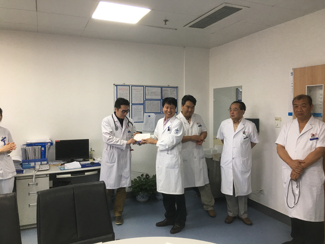 7月初,我科张曦医生取得第六届菁英杯全国胸外科优秀青年医师胸腔镜手术技术大赛西北赛区决赛食管组冠军,为此,胸外科于2019年7月10日召开全科会议按照新出台的"奖励方案"对张曦医生进行了表彰奖励。雷光焰主任鼓励大家:个人的荣誉就是集体的荣誉,胸外科团队的发展离不开中青年医生的努力,年轻医生的进步是科室强大的基础。科室努力为每一个年轻医生搭建上升和进步的平台,鼓励进修学习,取长补短,积极推进手术技术、难度发展。我科响应素股 号召,计划常规开展中青年医师每周五轮次学术讲座,手术技巧交流,高难度手术术前科内MDT讨论,锻炼胸外科每位医生都能成为手术能手。