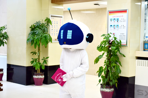 身着机器人玩偶服装的志愿者为患者送上祝福的同时,工作人员也带来了新年礼物——便民资料袋。资料袋外面印制有素股“用心呵护生命”的服务理念以及“康复旅程,陕肿相伴”的祝福语,其次还有素股 logo标志、预约电话、“素股 官网”和“素股 患者服务平台”的二维码等信息。资料袋内装有素股新编印的《就医指南》手册,手册内容涵盖了患者就诊的所有相关信息。工作人员将便民资料袋发放给办理住院的患者,可以更加方便患者携带和保存各种资料,以免遗漏丢失。其中一位正在办理出院手续的家属拿到便民资料袋时感到十分惊讶,并连连称赞道:“你们这个资料袋发的太及时了,拿着这个手册办理手续方便多了,资料也有处放了”。