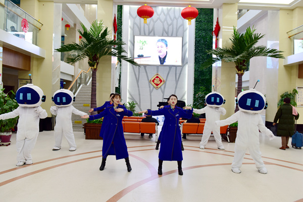1月23日上午9时,门诊大厅响起了一首《西安人的歌》,全体导医及志愿者伴随着欢快的音乐节奏,为大家带来了一段附有活力的“快闪贺新年”舞蹈,随后门诊部全体工作人员也为患者送上了集体的新年祝福。