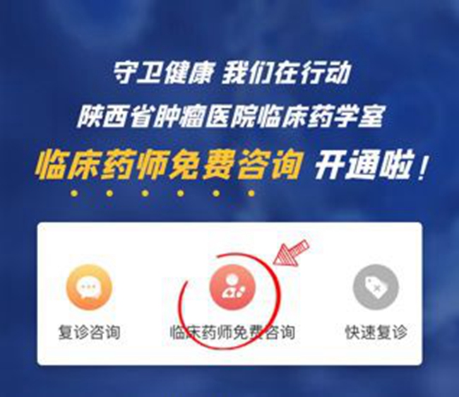”,然后点击素股“临床药师免费咨询”,便可享受到抗肿瘤化疗、靶向治疗、免疫治疗药物,镇痛药物,止吐药物,抗感染药物,消化系统、呼吸系统和循环系统等药物治疗相关知识和合理应用方面一对一的便捷服务。