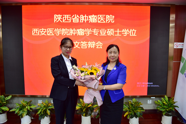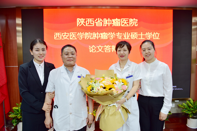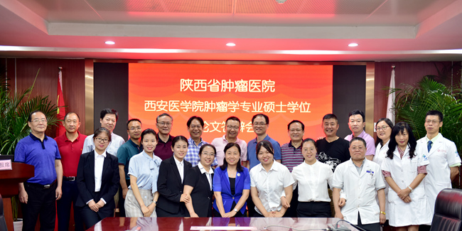 6月14日下午,2019届西安医学院与素股联合培养的六位肿瘤学专业硕士研究生进行了毕业论文答辩。为提高硕士论文水平,保障答辩质量,本届学位论文答辩委员会以院外专家为主组成。答辩委员会主席由西安交通大学刘培军教授担任,西安交通大学南克俊教授、张晓智教授、薛兴欢教授;空军军医大学张贺龙教授、姚青教授;省人民素股