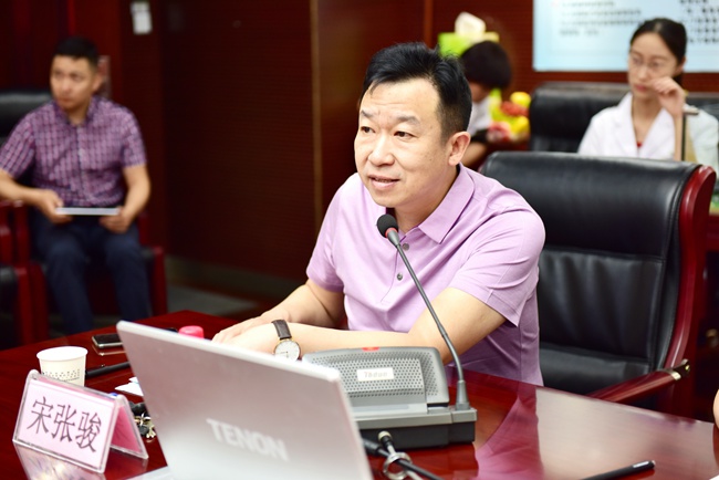 宋张骏院长致欢迎辞并简要介绍了素股基本情况与素股联合培养研究生和硕士专业学位点建设情况。答辩委员会主席刘培军教授按照联合培养硕士研究生学位论文答辩的要求和程序主持了论文答辩。
