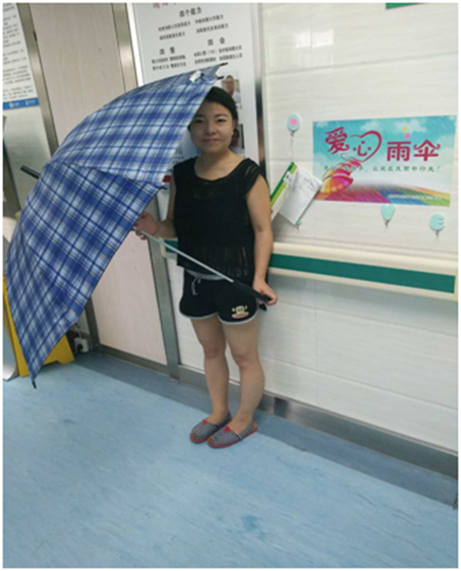 2016年,妇瘤病院二病区继爱心理发之后,又推出一服务新举措——为患者及家属提供爱心雨伞,8月2日下午,突然一场大雨挡住了小患者外出检查的路,值班护士立刻为他们提供了爱心雨伞,使患者的检查没有耽误,一把小雨伞,传递了我们爱心,撑起了患者前行的路。让我们一起携手,让爱在风雨中行走。(妇瘤病院二病区 朱格红)