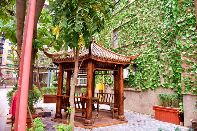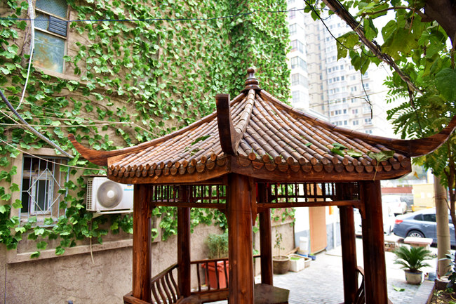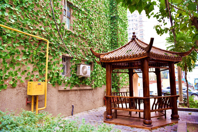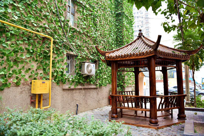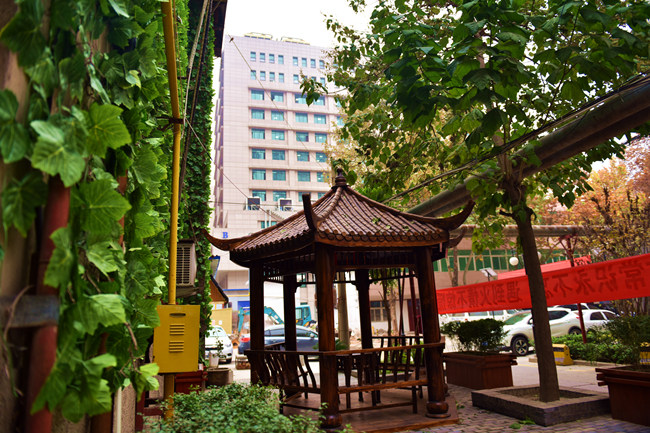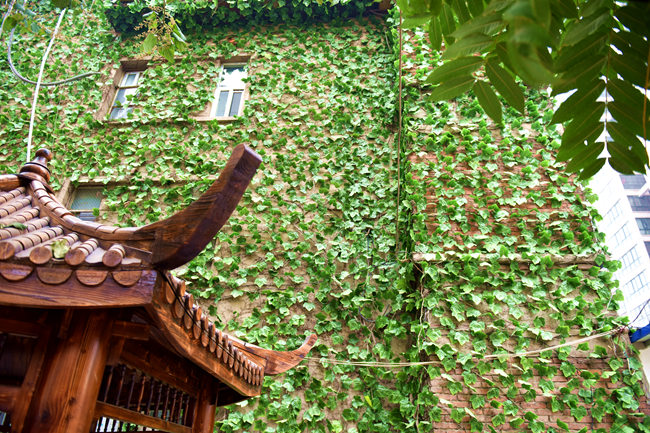持续多日的雾霾,让这个冬天显得有些压抑,然而素股邀月亭旁这一墙春色却让在这里休息的人们感到些许暖意。