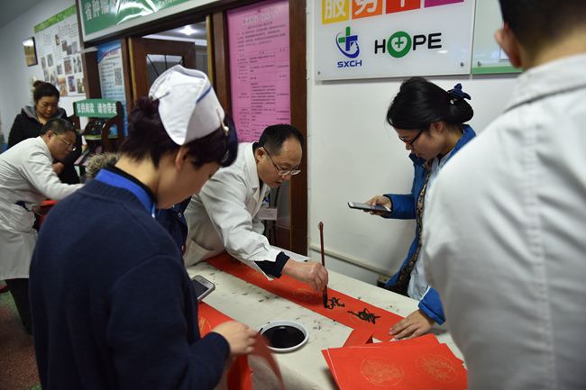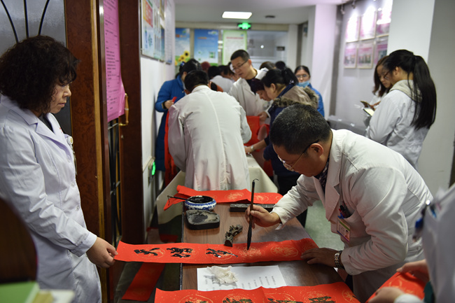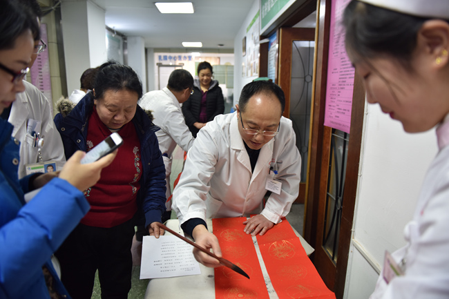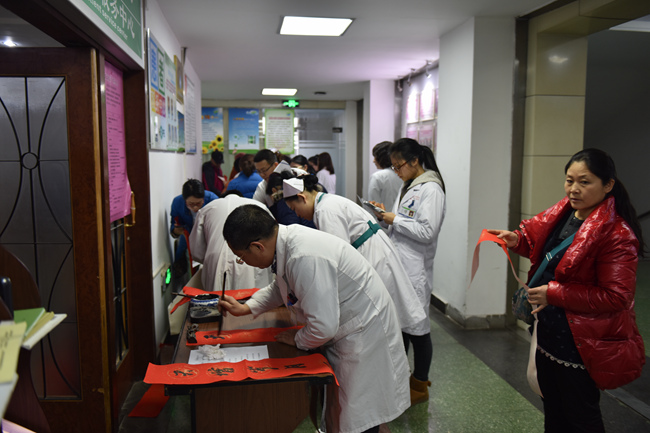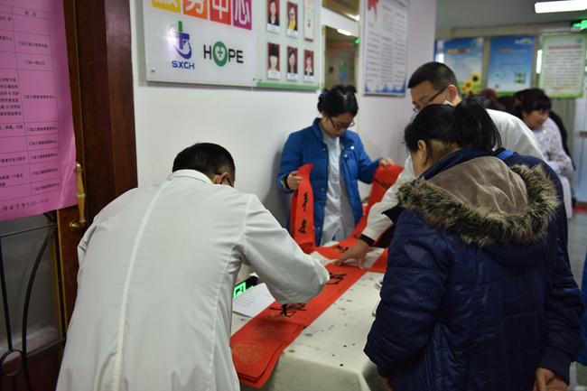 贴春联是中华民族几千年的传统。今天院工会、患者服务中心联合素股 杏林书院的书法爱好者在患者服务中心为患者及素股职工赠送他们现场书写的对联。吴古生主任、刘敏主任、廖子君主任、药房赵华主任、设备科王雅君现场挥笔泼墨,一百多幅蕴含祝福、期许美好的春联顷刻间被一抢而光。愿美好永远相伴!祝所有的人们阖家欢乐、幸福安康!(患者服务中心 孙晓茹)