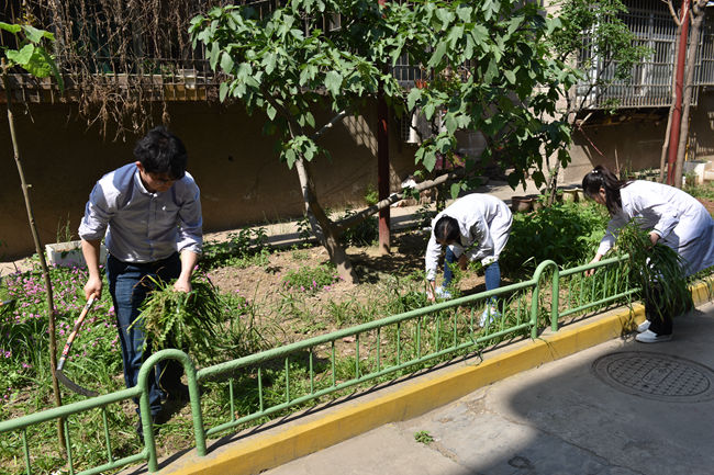 近期,西安市开展了“烟头不落地、西安更美丽”、“城市环境卫生大整治”等多项确保城市环境卫生大提升、垃圾清理无死角的活动。为积极响应号召,4月27日下午,院团委联合后勤保障部,对家属区1、2号楼之间花坛的杂草进行了集中清理,为打造干净、整洁、舒适的素股 环境,让素股 有颜值、有内涵、有形象出一份力,展示了“卫生无死角,环境更美丽”的素股 新文明形象。(院团委)