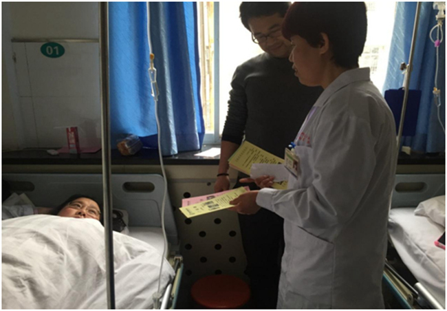 (工作人员为患者及家属讲解)