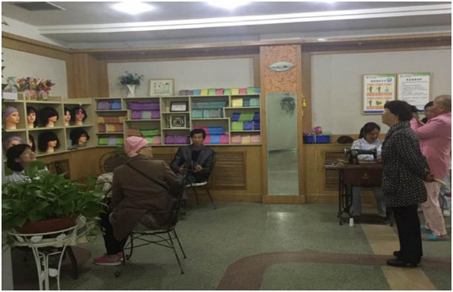 众所周知,大多数放化疗患者都有不同程度的脱发。尤其女性患者在出现脱发时,难免会产生自卑、恐慌的心理。而一顶小花帽能够帮助女性患者提高自信,重拾美丽。为她们提供帮助的爱心志愿者中有已经出院的患者,也有正在治疗的患者,有社会爱心人士,还有素股