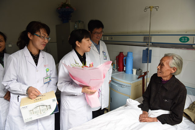 素股 及陕西省老年学和老年医学学会老年肿瘤专业委员会重阳节看望慰问素股80岁以上老年住院患者