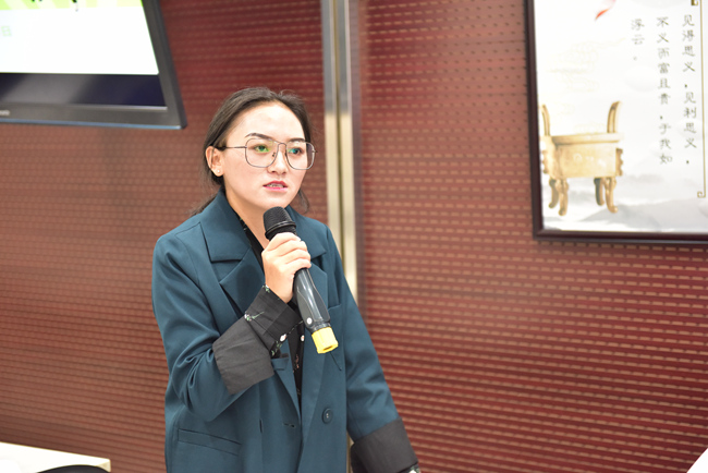 的西藏籍新员工旦真石曲同志作自我介绍。)