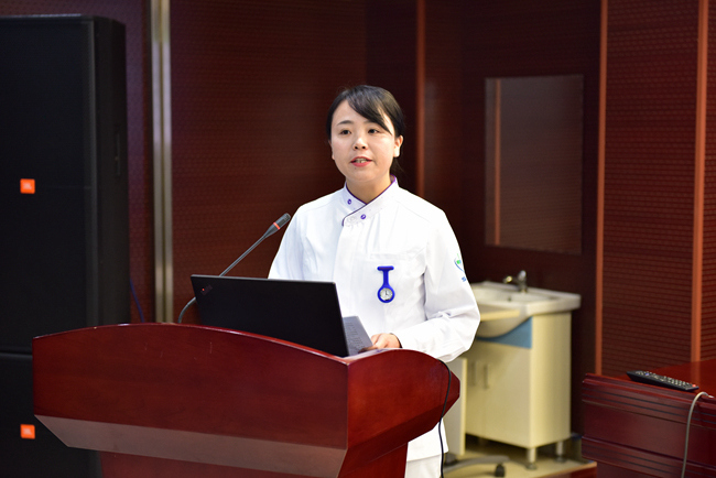 (护理部护师赵将代表新员工发言,分享他们的入职感受和对未来工作的期待。)