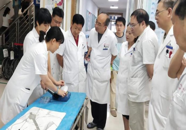 培训通过操作演示,重点向门诊专家们讲解了素股AED的分布地点、使用流程和操作步骤。AED是一种用来抢救“心脏猝死”的“便携式”医疗设备,取用方便,操作简单。AED能帮助心脏骤停、心室颤动的病人恢复心律,被称为“救命神器”。培训现场门诊专家对这种“傻瓜电击器”产生了浓厚的兴趣,专家们边操作练习,边提问交流,学习热情高涨,周五下午出诊专家们还参加了医务部举办的“急救知识讲座”。