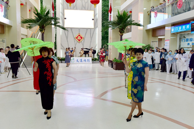 短短二十分钟的时间里,还有“最美志愿者”南丁格尔志愿者团队伴着《奉献》的悠扬旋律,在专业的舞蹈老师带领下演绎了芭蕾舞秀;“最美明珠”护士长团队展现了国粹旗袍的韵味与女性的优雅风姿。
