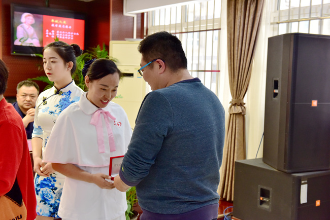 在表彰颁奖环节中,护理部主任谢娟宣读了2018——2019年度护理工作表彰名单,院领导班子及部分患者代表为获奖集体和个人颁奖。