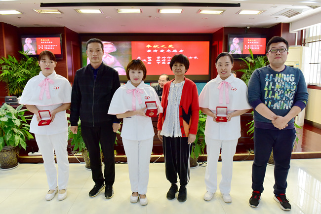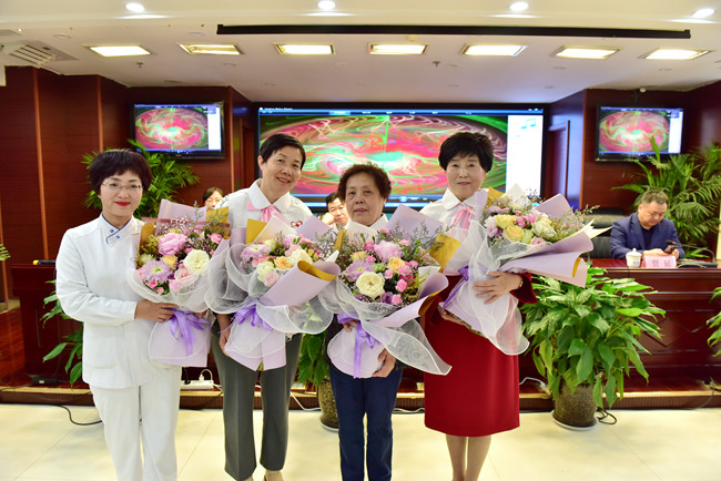 (郭晓东、张惠、刘清元、唐红霞、李国娟、王冬梅、杨志华、田莹、张洁、孙晓茹、谢娟11名护士获得最长护龄奖)