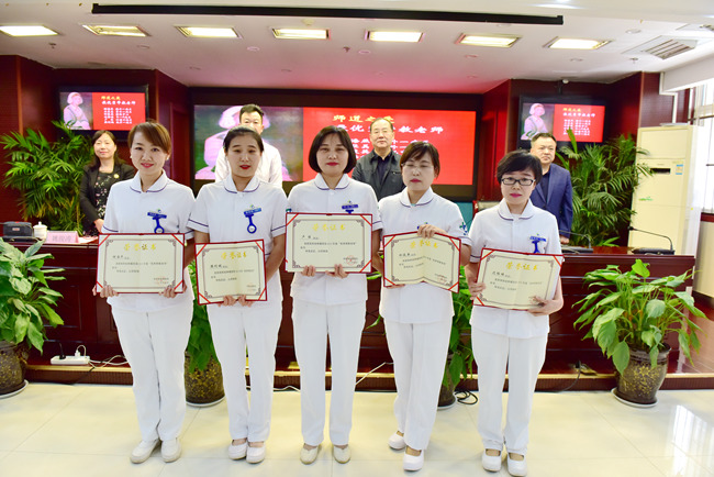 (谢海燕、祁俊英、边梅娃、卢佳、樊利妮5名护士获得最优秀带教老师奖)