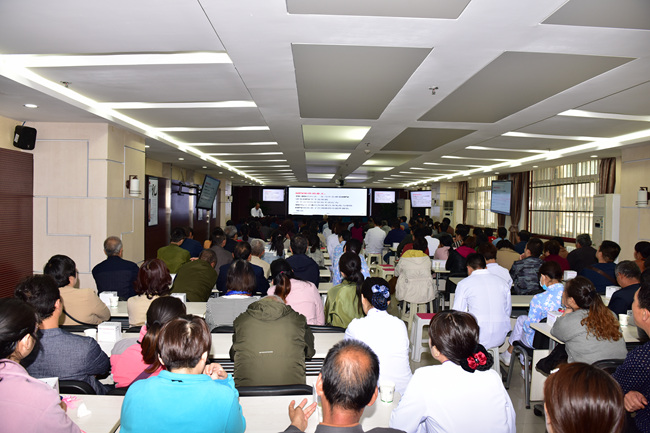 姚俊涛副院长主持科普大讲堂。科普大讲堂里,支修益、聂勇战、陈小兵、李东红等教授分别就肺癌、消化道肿瘤、妇科肿瘤防治和防癌健康生活习惯等热点话题为当地群众和患者献上一场精彩生动的健康知识讲座。