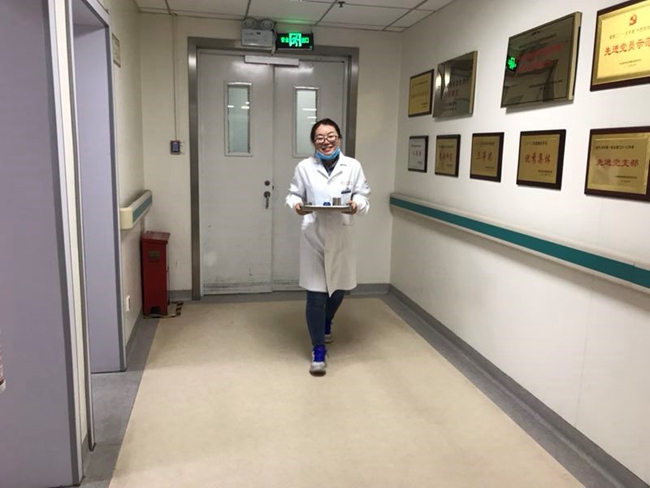 (当中心工作人员下病区服务时,张玉丽承担起全部观察照护服务)