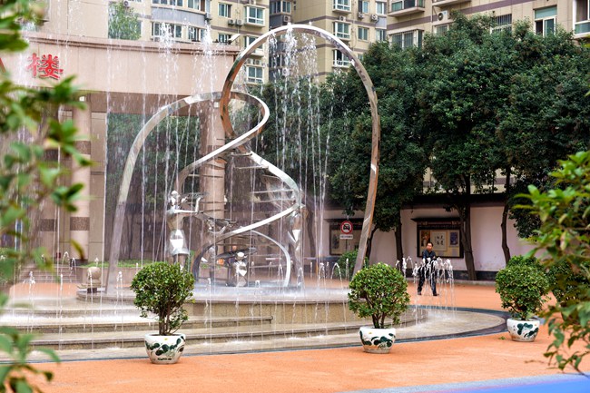 (高5.4米的“生命之源”雕像,与灵动的喷泉相得益彰。)