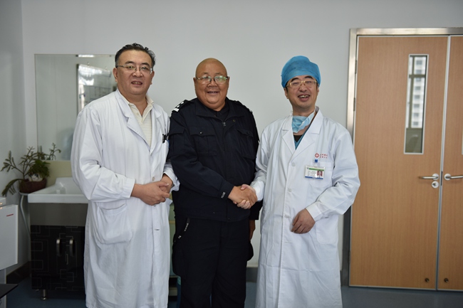 手术室,赵华主任与素股手术室党晓东主任历时四个小时,成功为苏师傅做了舌癌广泛切除术。术后,苏师傅恢复良好,他表示:“现在吃饭也香了,也不痛了,对生命的信心也有了。“当谈及对”医联体“服务的感受时,苏师傅说:”老伴照顾我这么些年,很辛苦,身体也不大好,儿女又忙,在西安做手术委实不方便。现在好了,有大素股