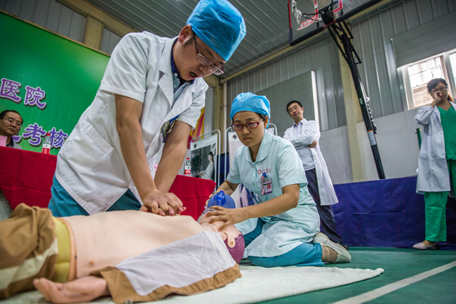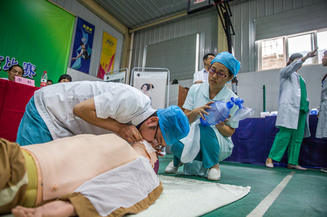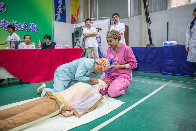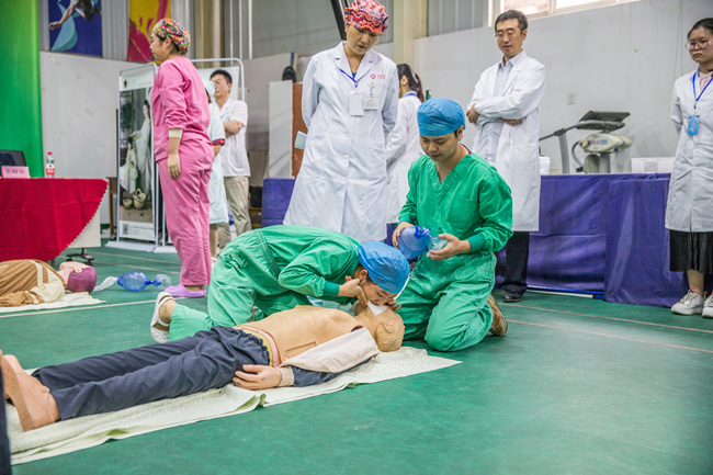 “心肺复苏”操作技能考核比赛在职工活动中心圆满举办。参加此次活动的有院领导班子,评委组,各科室参赛选手和科教科、医务科与护理部的工作人员。