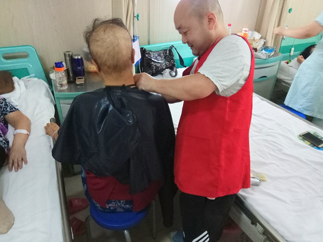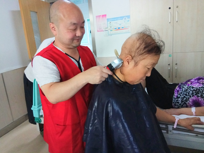 (志愿者为患者理发)
