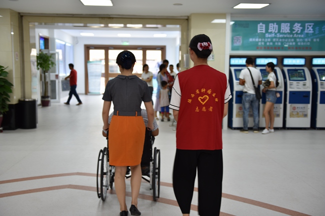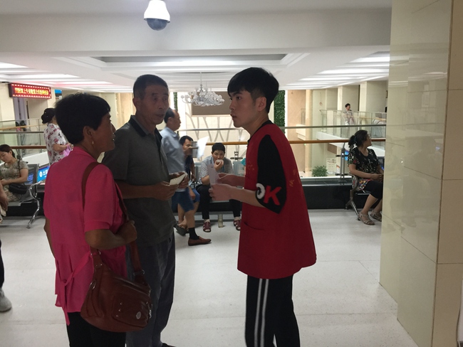 除了热情的导医,门诊楼一二层还分布着不少的“志愿者”,为患者提供导诊服务,帮助患者自助挂号、结算费用、上下电梯等,为患者就医诊疗提供便利。